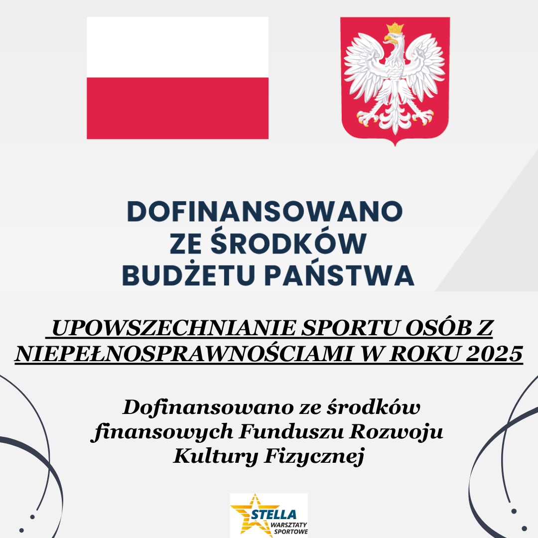 Z radością informujemy, że realizujemy zadanie „Organizacja zajęć sekcji sportowych” w ramach programu Upowszechnianie sportu osób z niepełnosprawnościami w 2025 roku.